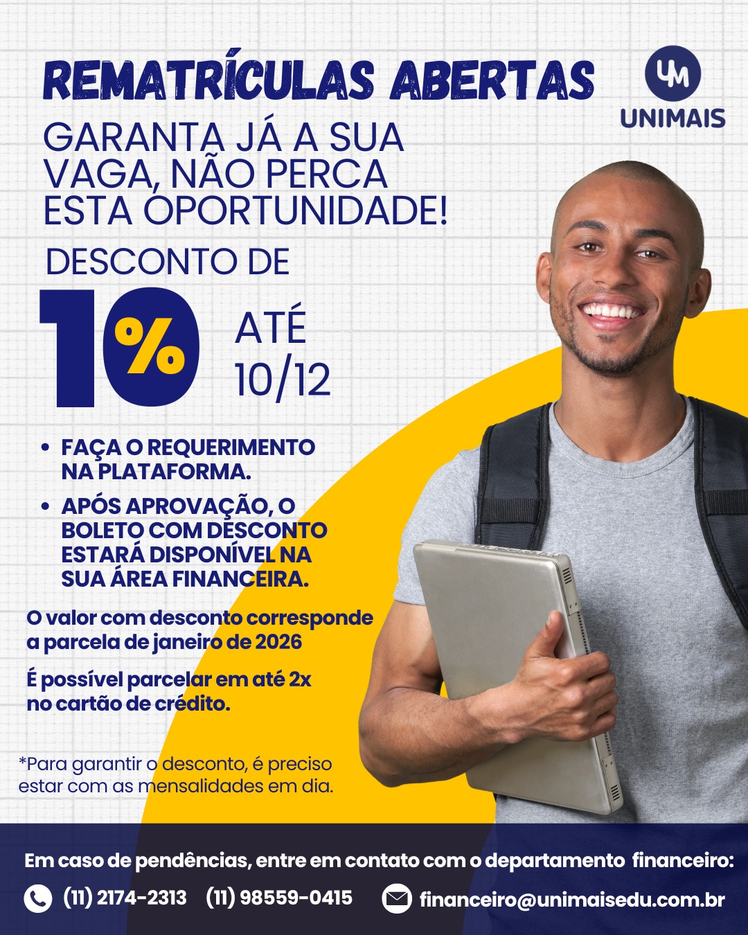 Diante do ocorrido, a Faculdade Unimais será a única responsável por todas as questões acadêmicas e financeiras de sua pós-graduação.